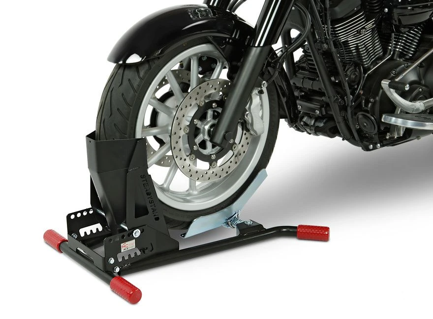 De AcebikesSteadyStand Multi is ideaal voor thuisgebruik. Omdat je je motor rechtop kunt zetten, neemt hij niet veel ruimte in beslag in je garage. De SteadyStand Multi is gemakkelijk op te bergen vanwege het kleine formaat en de lichtgewicht materialen. De SteadyStand Multi is volledig ontworpen voor totaal gebruiksgemak en kwaliteit en is volledig verstelbaar zonder gereedschap. Dit eenvoudig af te stellen systeem is perfect wanneer u meer dan één motor bezit of als u wilt wisselen tussen de voor- en achterband. De SteadyStand Multi is geschikt voor banden van 15 tot 21 inch met een breedte van 90 mm tot 200 mm. De unieke rubberen voetjes voorkomen dat de SteadyStand Multi gaat schuiven.
